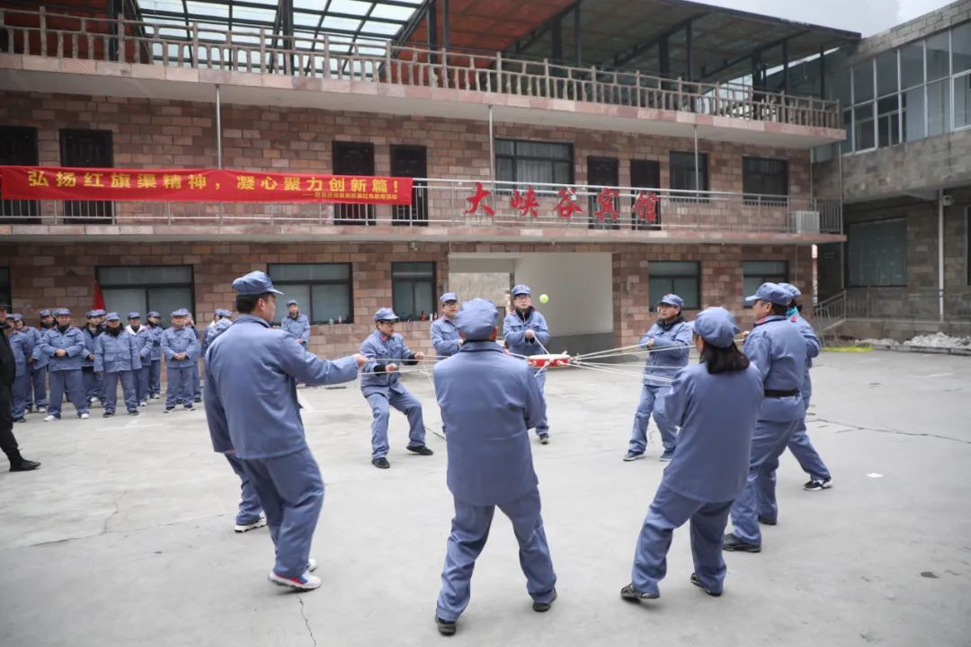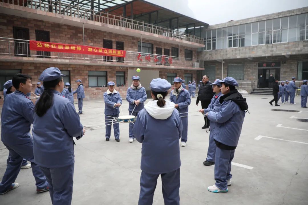 吃完早飯休息過后,就又開始了有趣的團隊游戲環節,在教官的帶領下,大家先進行一些熱身活動,驅走身上的寒氣,接下來有趣的“橋梁工程、擊鼓顛球”等團建游戲拉開序幕。