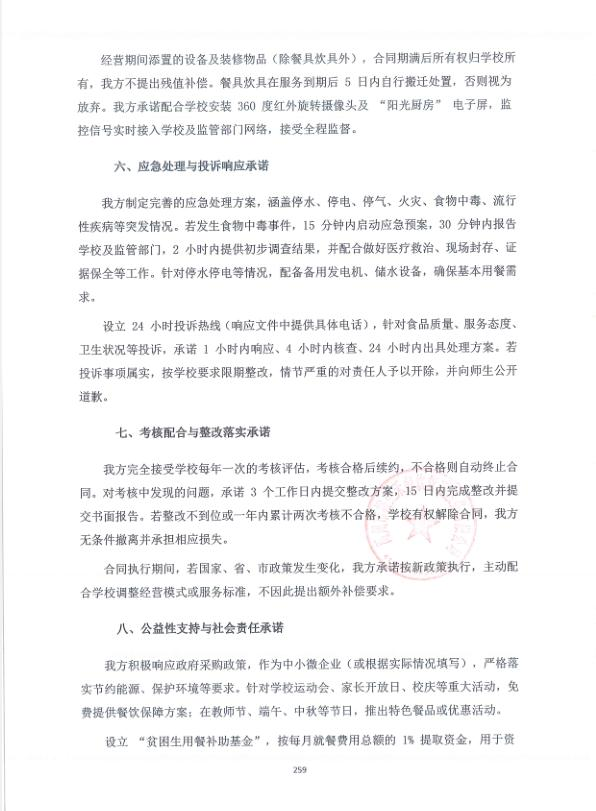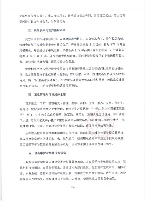 3 | 河南潤(rùn)德餐飲管理有限公司 | 服務(wù)期1年(期滿考核,合格可以續(xù)約,最多可續(xù)約四次),每年對(duì)服務(wù)商考核,考核合格后,續(xù)約合同;考核不合格,自動(dòng)終止合同。如合同執(zhí)行期間與國(guó)家、省市政策或規(guī)定不符,按國(guó)家、省市相應(yīng)政策執(zhí)行 | 密封完好 |